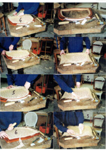 - Puis déposer le morceau de cannage dans la gorge , puis sertir l’ensemble avec la moelle de rotin en tapotant sur celle ci pour la faire descendre dans la gorge